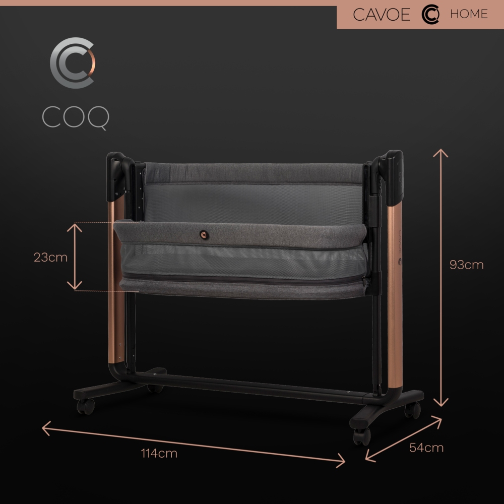 CAVOE COQ je inovativní, multifunkční produkt, který kombinuje užitečné hodnoty s nejnovější technologií. COQ spojuje funkce dětské postýlky a multifunkční postele 3v1. Lze ji využít jako běžnou přenosnou postel, přistýlku (přistýlku) a dětskou postýlku pro starší dítě, stejně jako kolébku. Jedná se tedy o SMART produkt 4 v 1. Designéři CAVOE se zaměřili na odvážný styl a moderní podobu produktů, díky nimž je COQ nejen funkční, ale lze je použít i k dekoraci vašeho domova.