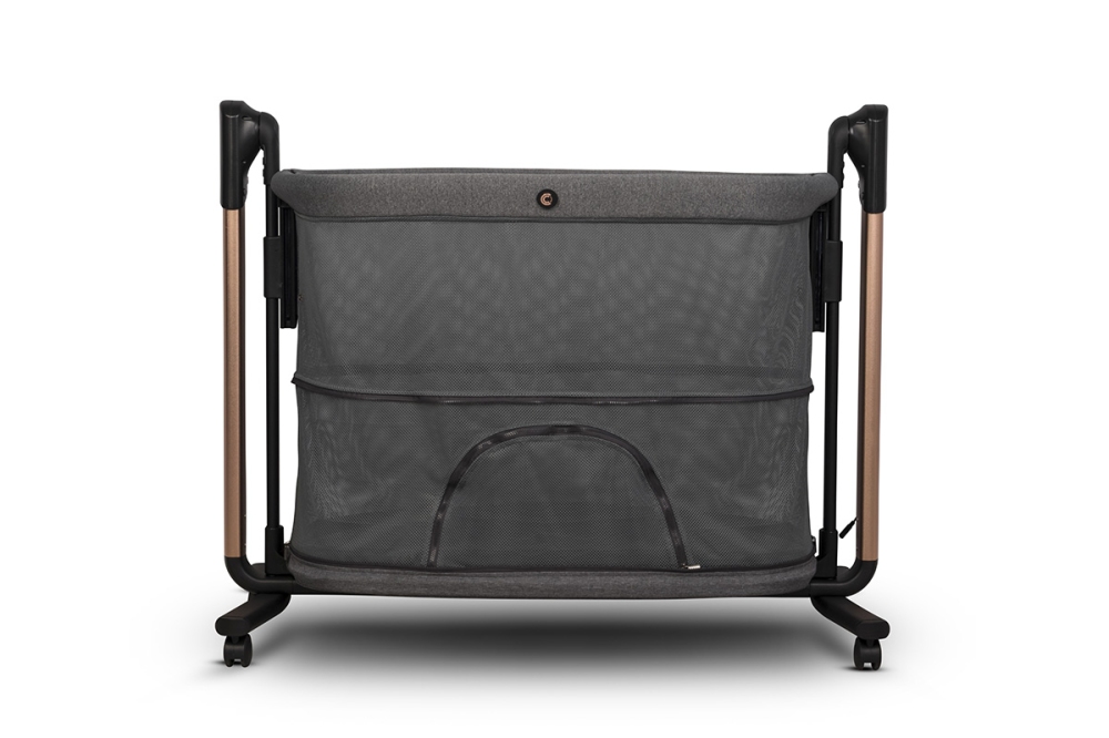 CAVOE COQ perfektně funguje jako dětská postýlka. Díky 4 kvalitním kolečkům můžete postel pohodlně přemístit z jedné místnosti do druhé. Kolečka jsou pogumovaná a mají tichý chod, což umožňuje posouvání postele bez probouzení dítěte. Každé kolo má také brzdu. Bočnice postele jsou vyrobeny z kvalitní síťoviny pro lepší výhled na postel.