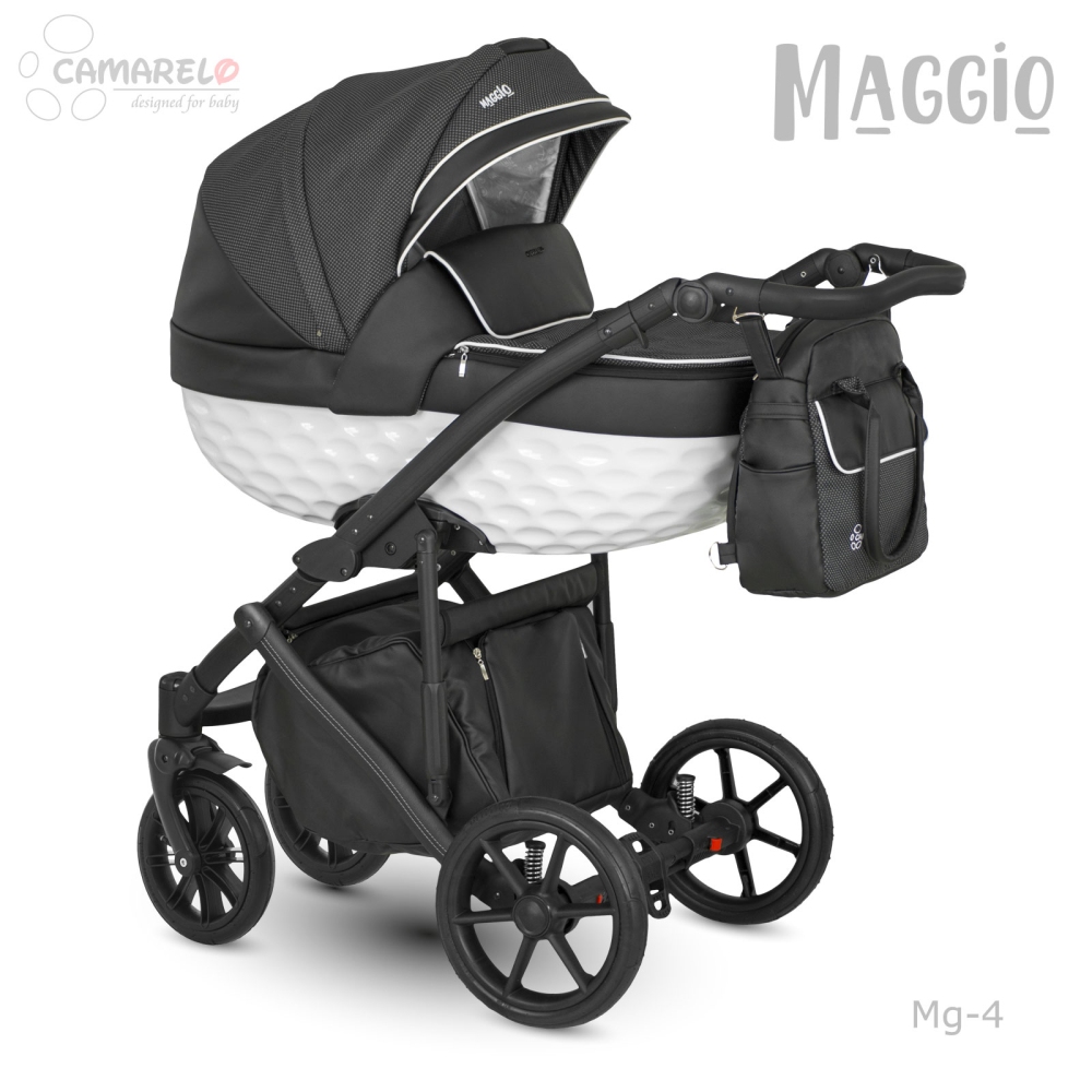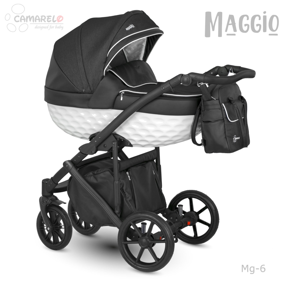 Dětský kočárek Camarelo Maggio je novinka od firmy Camarelo s možností nasazení dětské autosedačky, hluboké korby a sportovní části po i proti směru jízdy. Kombinovaný dětský kočárek Camarelo Maggio je vyroben z vysoce kvalitních materiálů, vyznačuje se velmi moderním designem a bohatým vybavením. Dětský kočárek Camarelo Maggio obsahuje hlubokou korbičku, sportovní část a umožňuje nasazení autosedačky na konstrukci. Hluboká korbička je vhodná od prvních dnů života dítěte do 6 měsíců, sportovní část pak od 6 měsíců do 3 let dítěte.