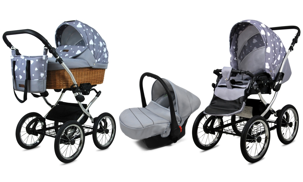 Krásný kočárek CLASSIC s proutěnou korbou od značky Raf-pol na HLINÍKOVÉM podvozku ve stříbrné barvě. Kočárek se vyznačuje hlavně svým retro designem a také skvělým odpružením, které umožňuje mamince pohodlně houpat své dítě.