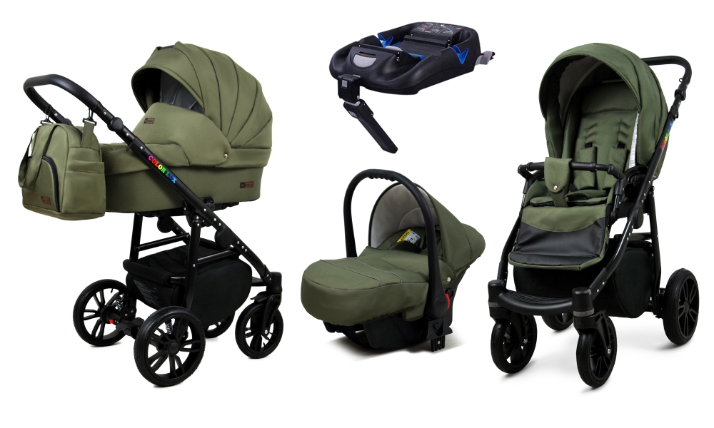 Kočárek BABYLUX Colorlux s podvozkem v černé barvě v trojkombinaci včetně autosedačky a báze Isofix od firmy RAF-POL. DOPRAVA ZDARMA