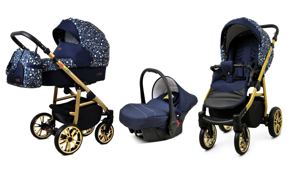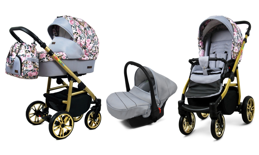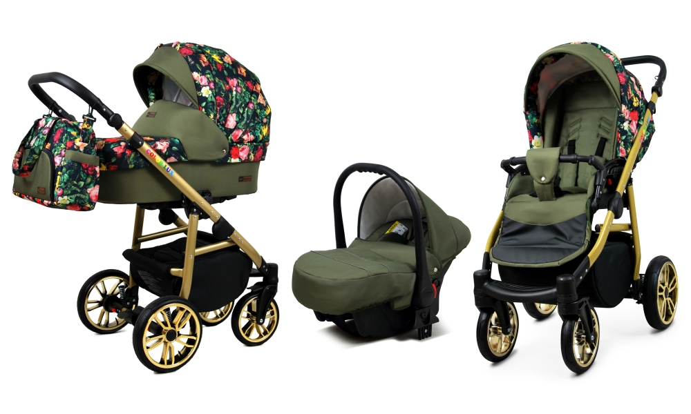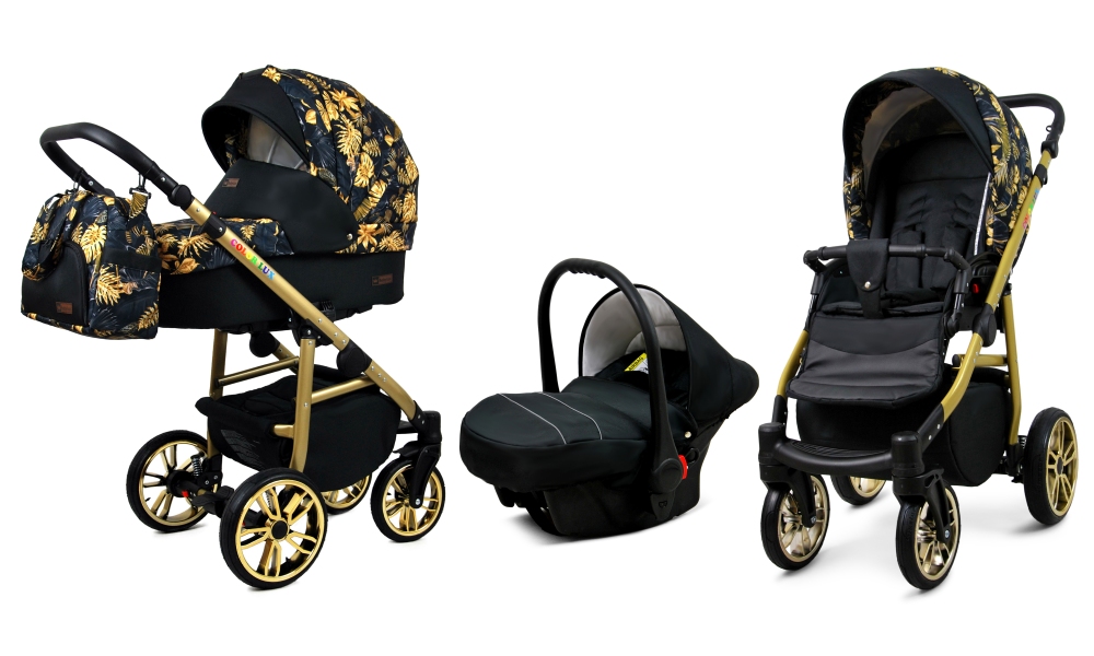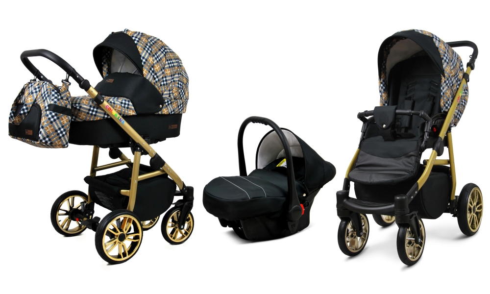 Kočárek BABYLUX Colorlux s podvozkem ve zlaté barvě v trojkombinaci včetně autosedačky od firmy RAF-POL. DOPRAVA ZDARMA