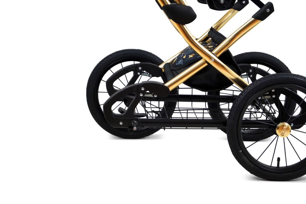 • Hliníkový podvozek ve zlaté barvě s nafukovacími koly