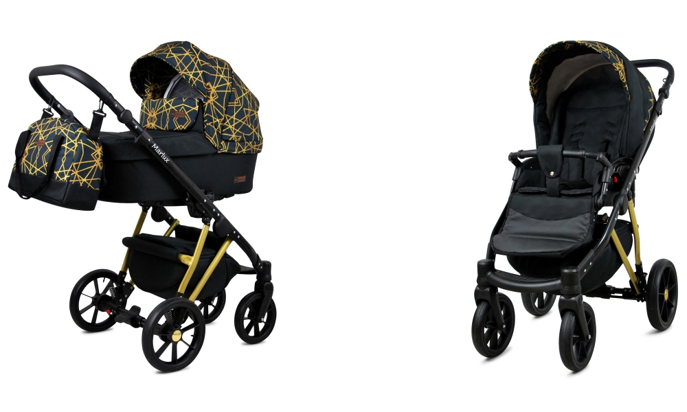 Kočárek BABYLUX MARLUX Magnetic na zlatém podvozku v dvojkombinace