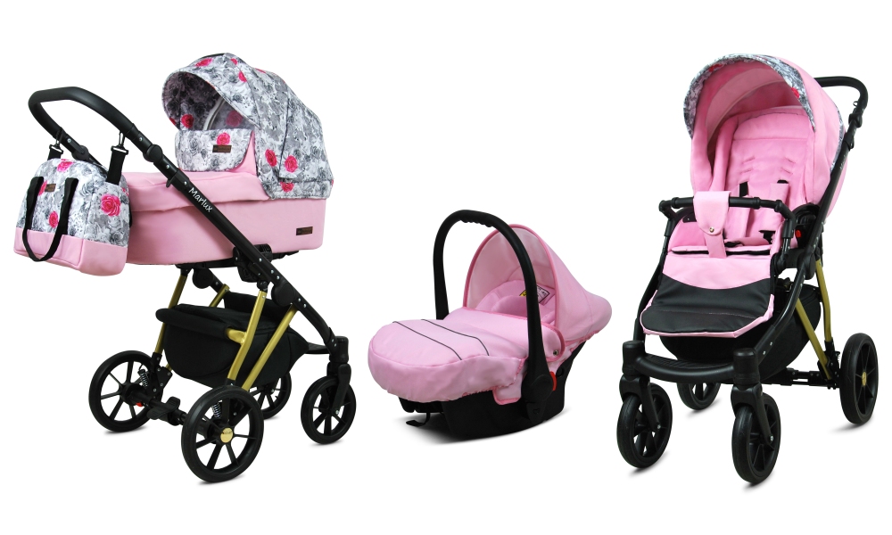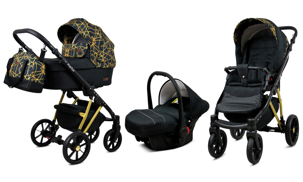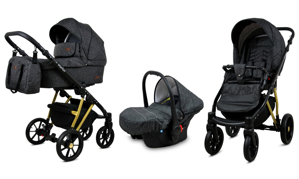 Kočárek BABYLUX MARLUX Magnetic na zlatém podvozku v trojkombinaci s autosedačkou