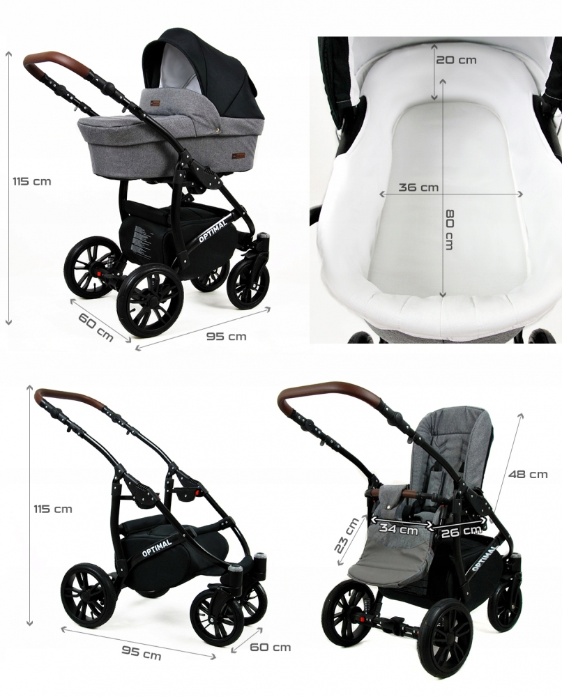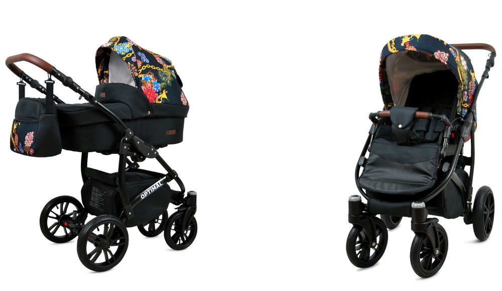 Kombinovaný kočárek BabyLux OPTIMAL na černém podvozku – hluboký a sportovní kočárek od výrobce Raf-pol