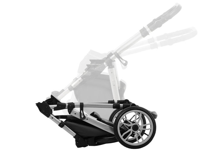 Kočárek má velká otočná přední kola s možností aretace, na zadních kolech je centrální brzda. Podvozek má stavitelnou rukojeť v rozmezí 70-114cm. Korbičky se na podvozek umisťují jednoduše navedením úchytů, ty se pak samočinně zajistí. Vyjmutí korbiček je po odjištění pojistky na každé straně podvozku. Výhodou podvozku je jednoduché složení a malé rozměry – vejde se do každého kufru auta