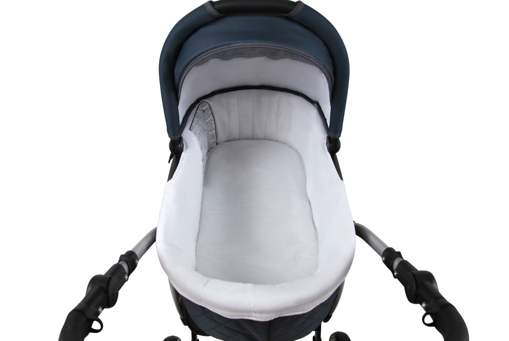 Hluboká korbička má uvnitř pohodlnou matraci a pratelný mantinel. Starší miminko ocení polohování zádíček, pro lepší výhled z kočárku :-). Stříška je polohovatelná, s odvětráváním a madle pro snadné přenášení. Součástí korbičky je nánožník na patenty.