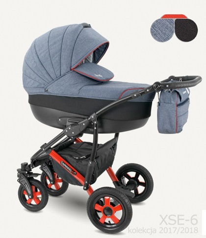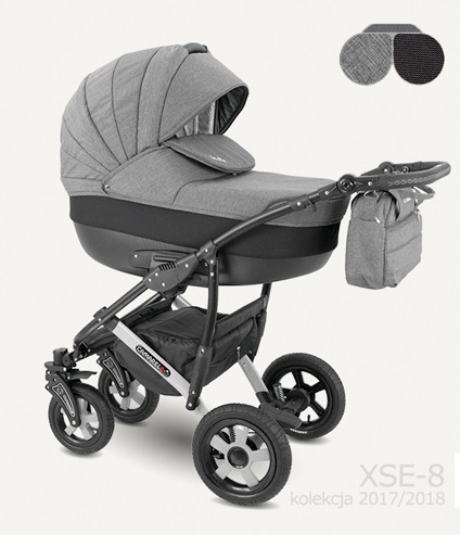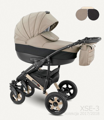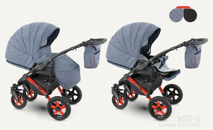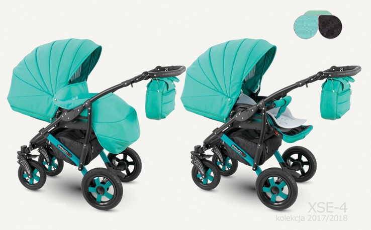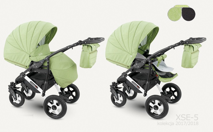 Čtyřkolový kočárek s hlubokou korbičkou, sportovní částí, možností nasazení autosedačky na konstrukci. Hluboká korbička je vhodná od prvních dnů života dítěte do 6 měsíců, sportovní část pak od 6 měsíců do 3 let ditěte. Kočárek je bezpečný, prostorný, snadno se s ním manipuluje, moderní design s bohatou výbavou (pláštěnka, moskytiera, držák na láhev v ceně)