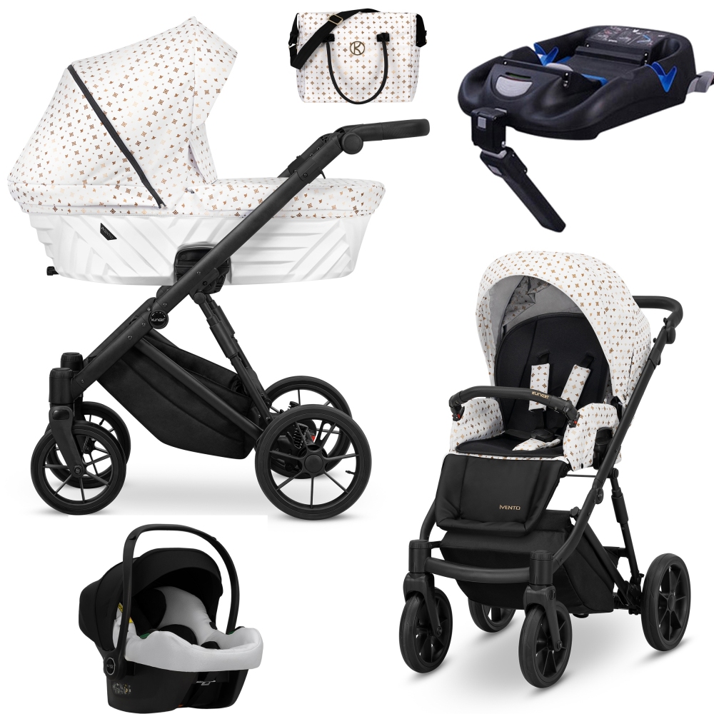 V ceně trojkombinace je hluboká korba s matrací, a nánožníkem, sportovní sedačka s nánožníkem, pláštěnka, moskytiéra, držák na láhev, termoobal, přebalovací podložka a také taška na rukojeť v barvě kočárku, autosedačka 0-13kg vč. adaptérů pro připevnění na podvozek kočárku a báze Isofix