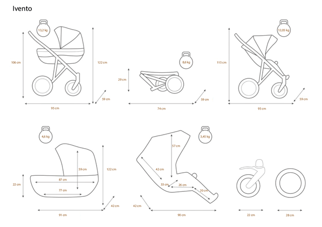 Lehoučký, výborně ovladatelný a designově krásný kočárek KUNERT Ivento Glam. V ceně dvojkombinace je hluboká korba s matrací, a nánožníkem, sportovní sedačka s nánožníkem, pláštěnka, moskytiéra, držák na láhev, termoobal, přebalovací podložka a také taška na rukojeť v barvě kočárku.