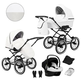 Lehoučký, výborně ovladatelný a designově krásný kočárek KUNERT Romantic. V ceně trojkombinace je hluboká korba s matrací a nánožníkem, sportovní sedačka s nánožníkem, pláštěnka, moskytiéra, držák na láhev a také taška na rukojeť v barvě kočárku, autosedačka 0-13kg vč. adaptérů pro připevnění na podvozek kočárku