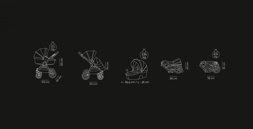 Kombinaci 2v1 tvoří podvozek, sedák, korbička a přebalovací taška. Lze dokoupit autosedačka 0-13kg v černé barvě včetně adaptérů pro připevnění na podvozek kočárku.
