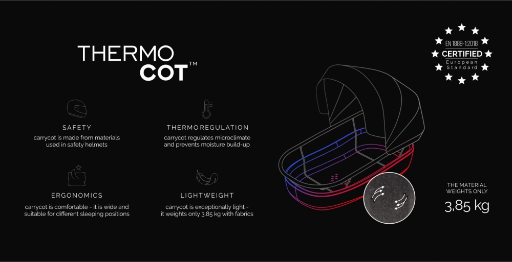 - Termoregulační vlastnosti korbičky chrání dítě před prochladnutím i přehřátím a udržují optimální mikroklima uvnitř korbičky