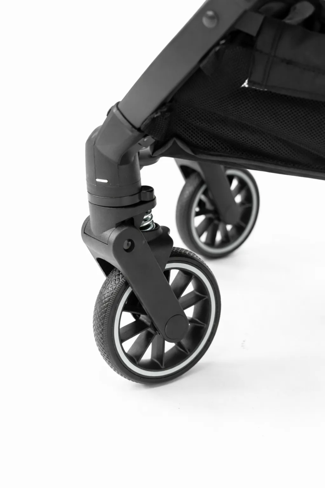 - Nožní brzda – naprostá bezpečnost - Kočárek má praktickou a robustní nožní brzdu, která umožňuje rychlé a bezpečné zablokování zadních kol. To je mimořádně důležitá funkce při zastavování, nakupování nebo parkování na svahu.