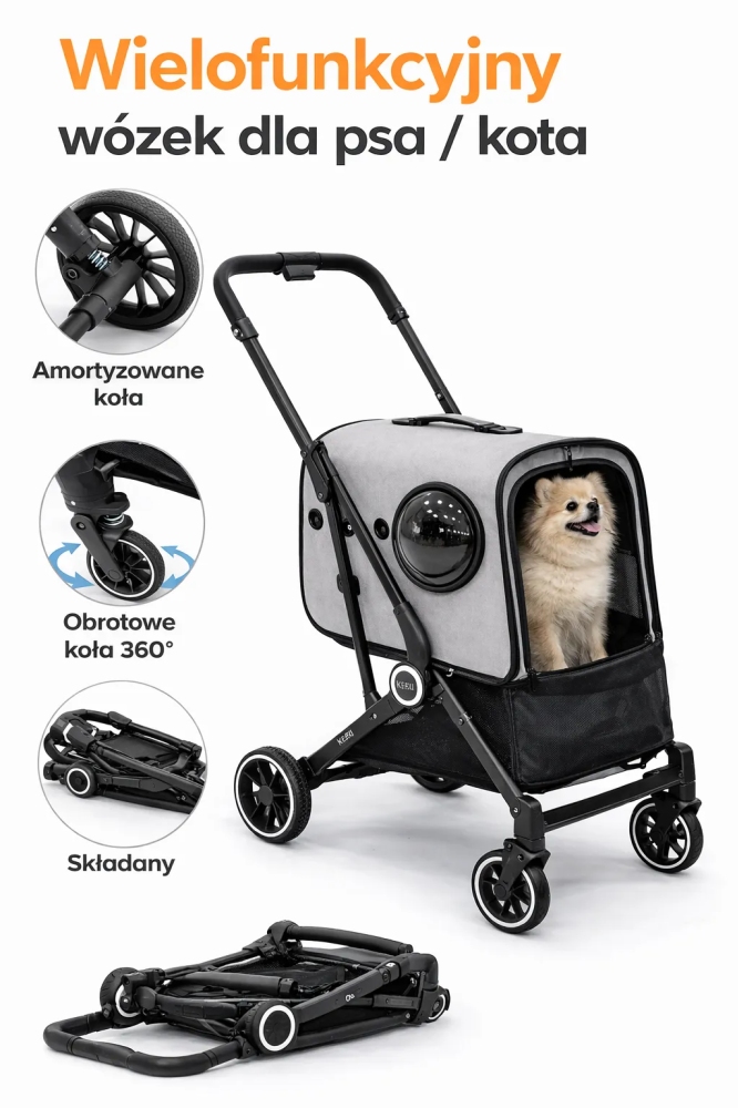 Tento moderní kočárek pro psy a kočky je perfektním řešením pro majitele, kteří si cení pohodlí, bezpečnosti a mobility. Tento funkční kočárek pro domácí mazlíčky je určen pro malé a střední psy a kočky a poskytuje jim pohodlí během procházek, cestování, návštěv veterináře a dovolených.