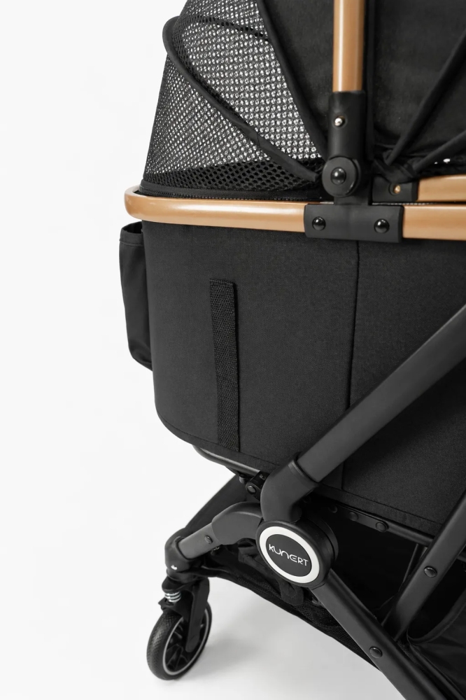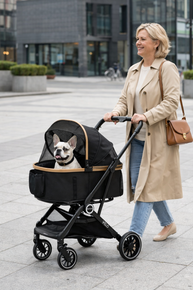 Ten nowoczesny wózek dla psa i kota z wentylacją, kołami 360° i hamulcem nożnym to doskonały wybór dla osób szukających połączenia stylu, bezpieczeństwa i funkcjonalności. Idealny jako wózek spacerowy miejski, wózek na zakupy oraz wózek do podróży samochodem.