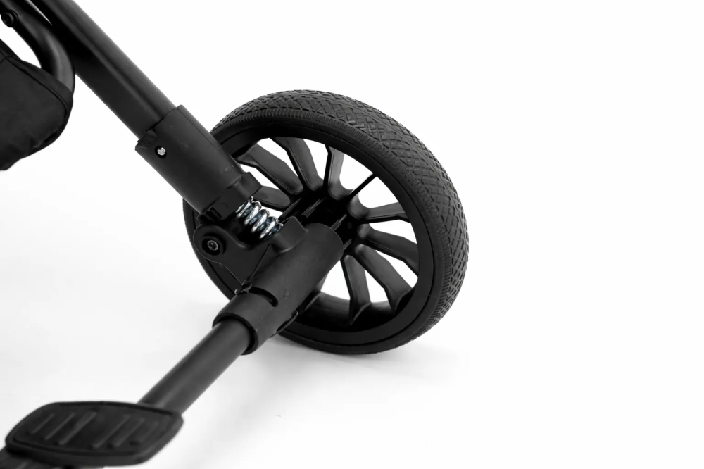 Pro maximální bezpečnost je kočárek vybaven centrální nožní brzdou, která umožňuje rychlé a pohodlné zablokování kol jediným pohybem nohy. Tato praktická funkce zvyšuje ovladatelnost kočárku, když stojí.