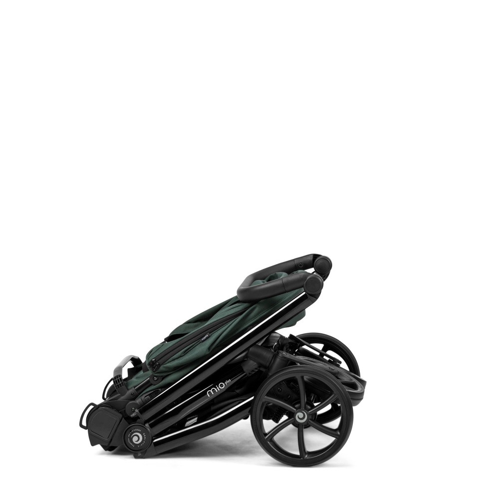 Tutis Mio3+ má nejergonomičtější skládací podvozek – pouhým jemným zatlačením se podvozek složí kompaktně. Díky dvojitému tlumení nárazů na předních a zadních kolech, odolným pneumatikám All-Road Technology a rozšiřitelné nákupní tašce bude každá cesta příjemnou jízdou. - Kompaktní skládací sedací jednotka