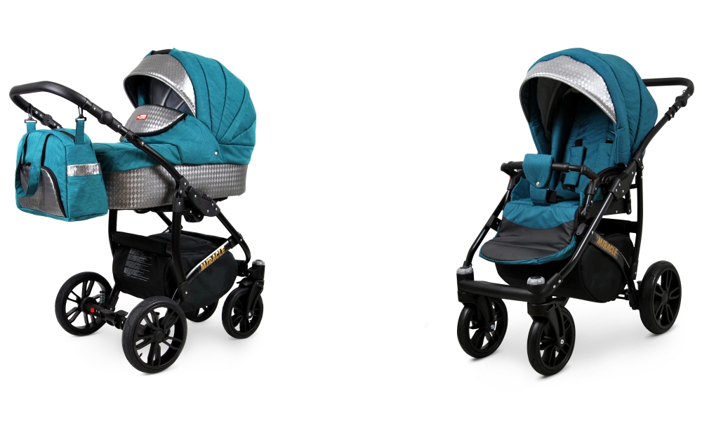 V ceně kočárku je HLINÍKOVÝ podvozek na čtyřech kolech, hluboká vanička, nánožník na hlubokou i sportovní verzi, sportovní sedačka, taška na rukojeť, moskytiera, pláštěnka., přebalovací podložka, držák na pití.