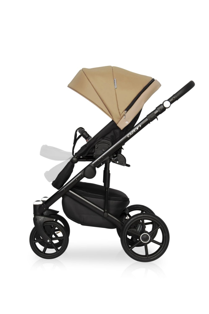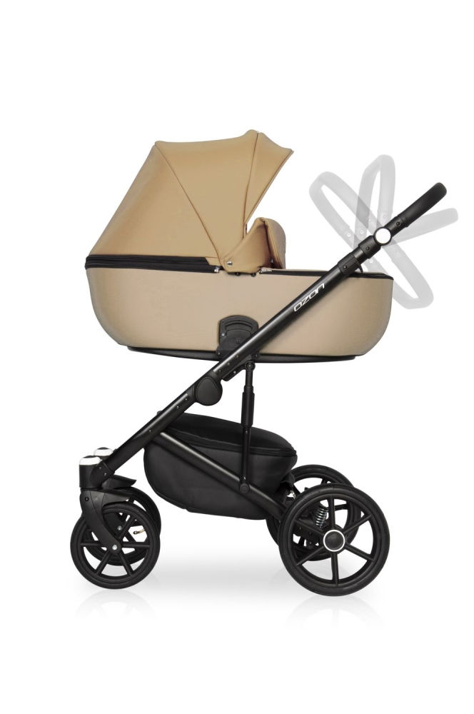 Kočárek má klasickou prostornou korbičku s kokosouv matrací a konstrukci vybavenou pro chůzi v jakémkoli ročním období – s inovativním větráním za horkého počasí, prodlouženou stříškou a dostatkem volného prostoru v korbičce. Potahový materiál je luxusní ekokůže.