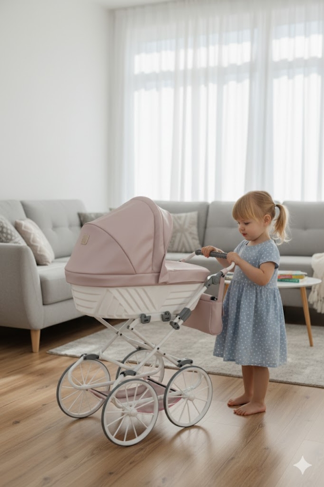 Kočárek pro panenky Rossie je unikátní model určený pro malé fanoušky stylu a nápadité hry. Vyroben z vysoce kvalitní ekokůže, zaujme elegancí, precizním zpracováním a odolností. Je to perfektní kombinace klasického designu a moderní funkčnosti.