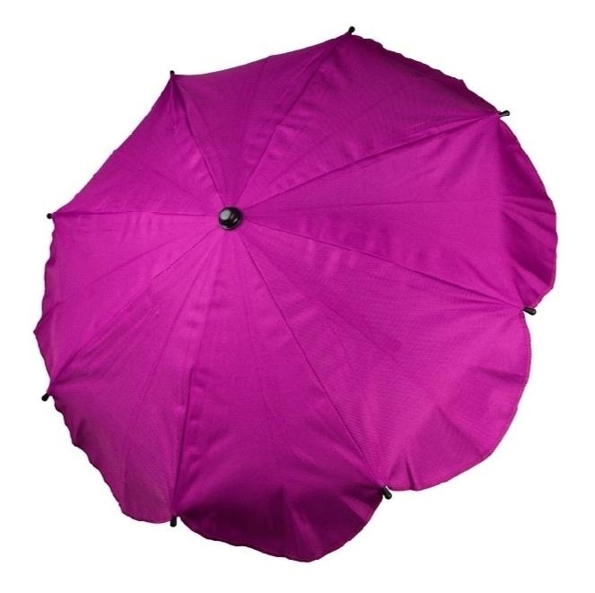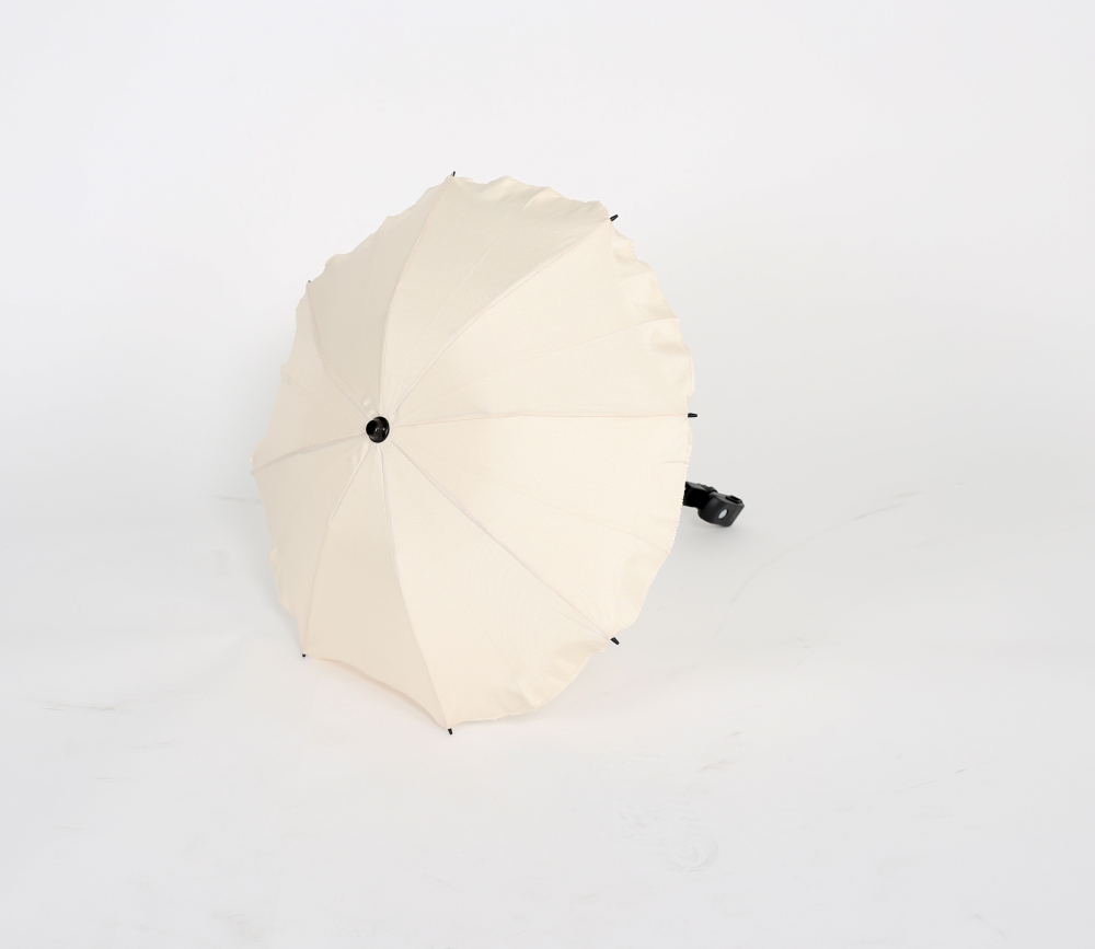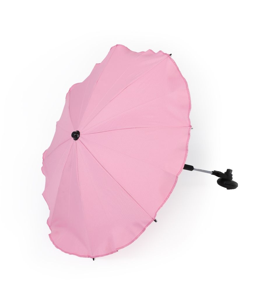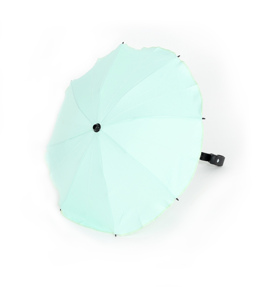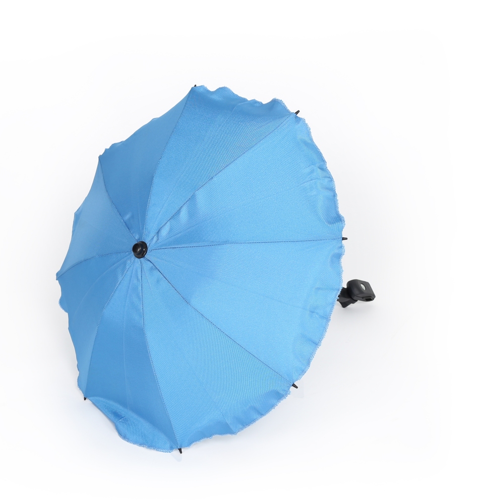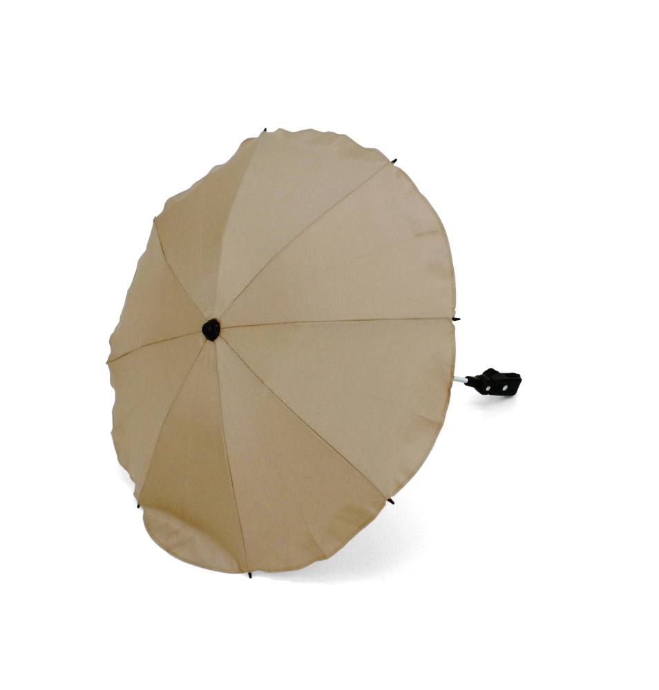 Kvalitní slunečník, manuální otevírání. Jednoduchá montáž bez použití jakého koliv nářadí. Možnost nastavení sklonu. Slunečník lze jednoduchým stlačením vytáhnout (přičemž konstrukce zůstane na kočárku). Vhodný na všechny typy kočárků díky univerzálnímu připevnění (i tlusté konstrukce). Držák je vybaven gumou, proti poškrábání konstrukce