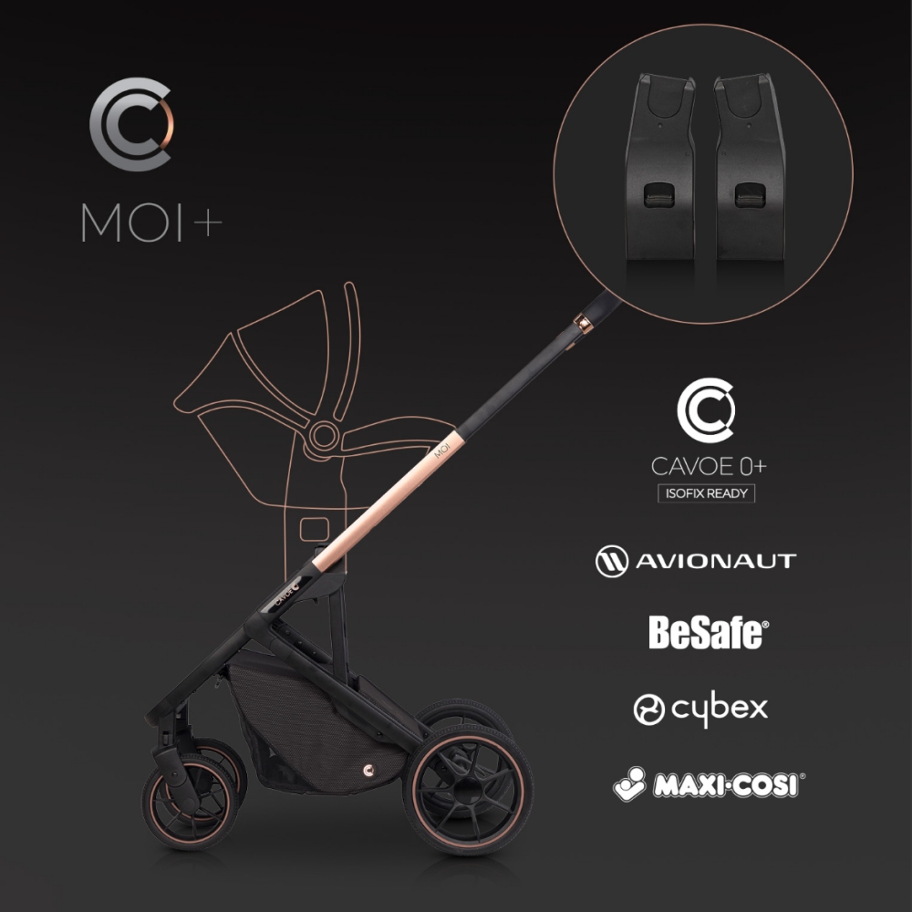 Sportovní kočárek Moi+ značky CAVOE je vylepšenou verzí oblíbeného modelu Moi. Je vylepšen o větší sedadlo, vyšší opěradlo, nastavení výšky stříšky až o 3 stupně, paměťová tlačítka a rozložení kočárku jednou rukou.